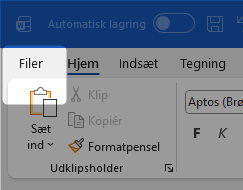 Fremfor at danne og gemme et dokument popper word op med denne opsætning alt text