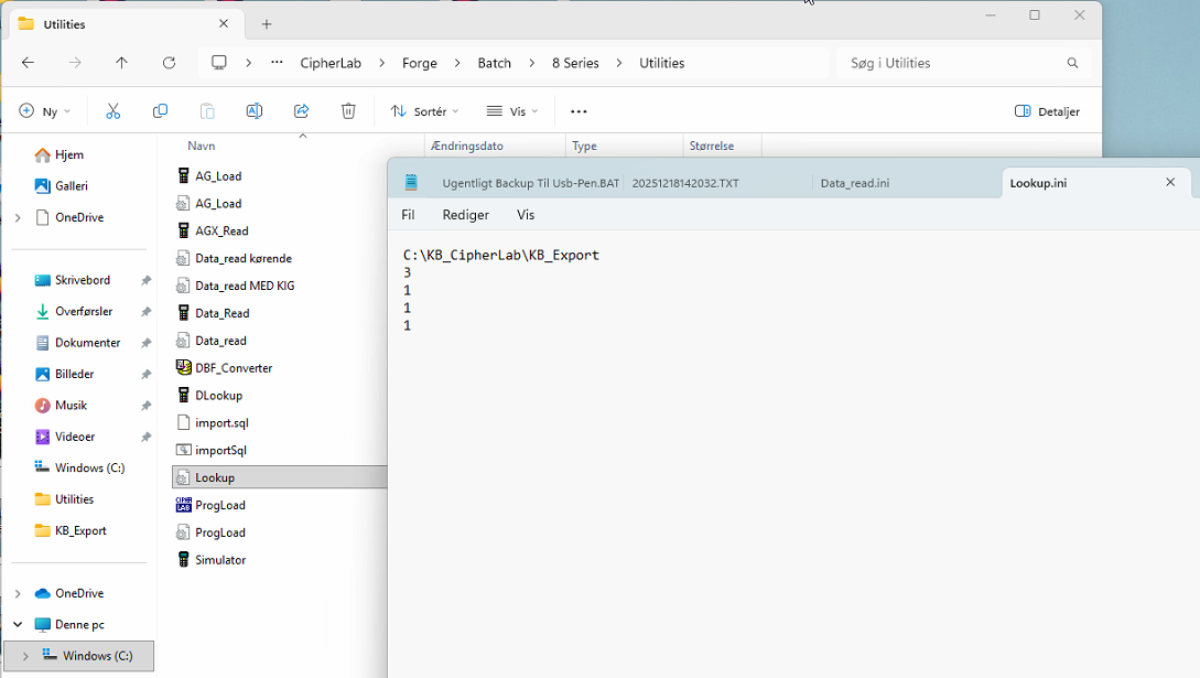 Hertil skal config filerne til værktøjerne (Utilities) kaldet Data_Read og DLookup oprettes eller rettes til at pege på de mapper hvor datafilerne skal gemmes til henholdvis
