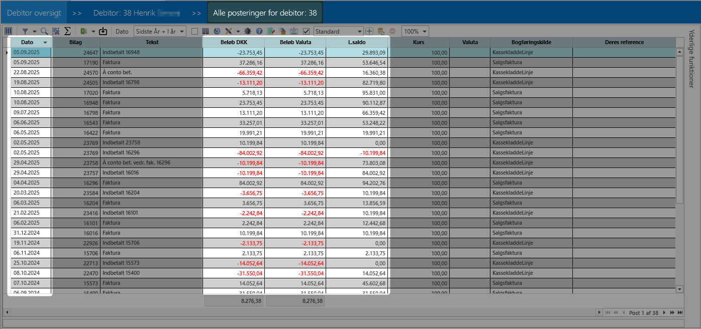 Feltet Løbende saldo aka L.Saldo giver derfor ikke den store mening at indsætte i f.eks. tabellen "ÅbnePoster" på en debitor eller kreditor, da de åbne poster ikke nødvendigvis kommer sammenhængede lige efter hinanden.