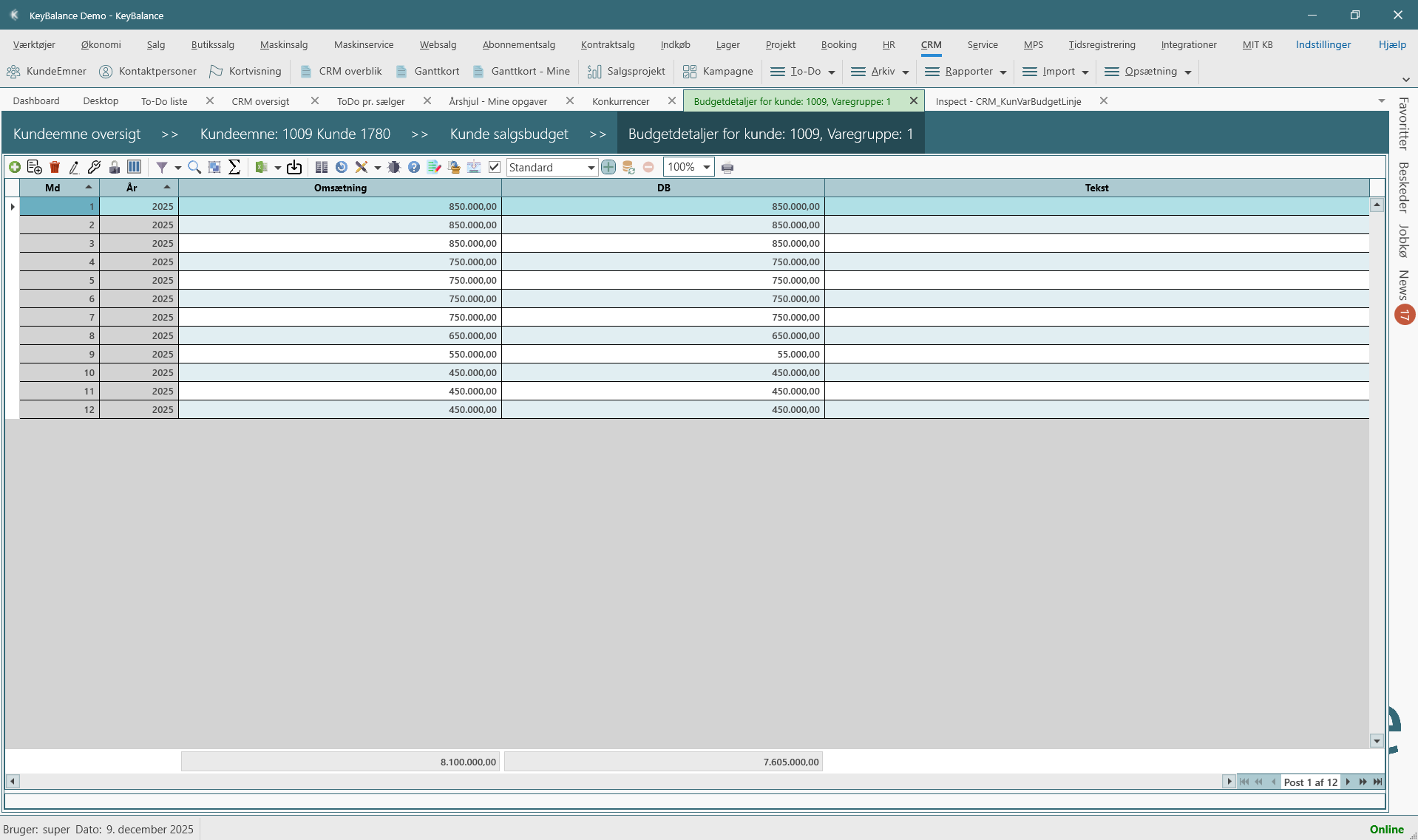 Kundebudgetter i KeyBalance bruges til at planlægge og følge op på forventet omsætning og dækningsbidrag for den enkelte kunde.