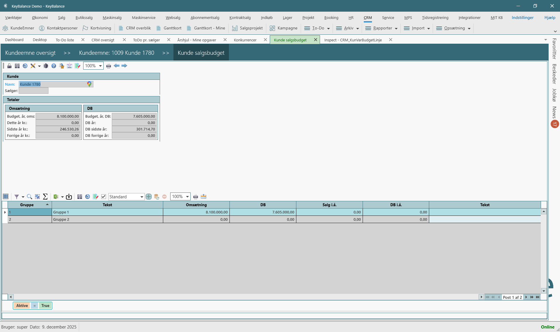 Kundebudgetterne integrerer naturligt med resten af CRM-modulet og giver værdifulde data: