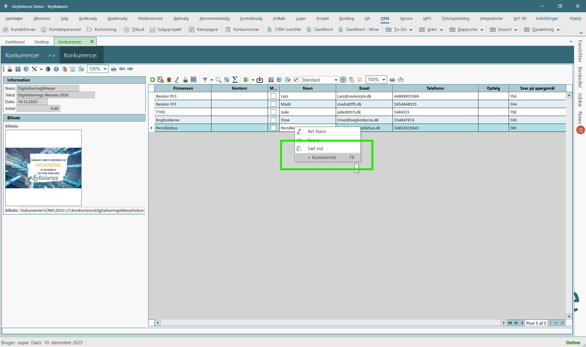Konkurrencer → Højreklik på KundeEmnet