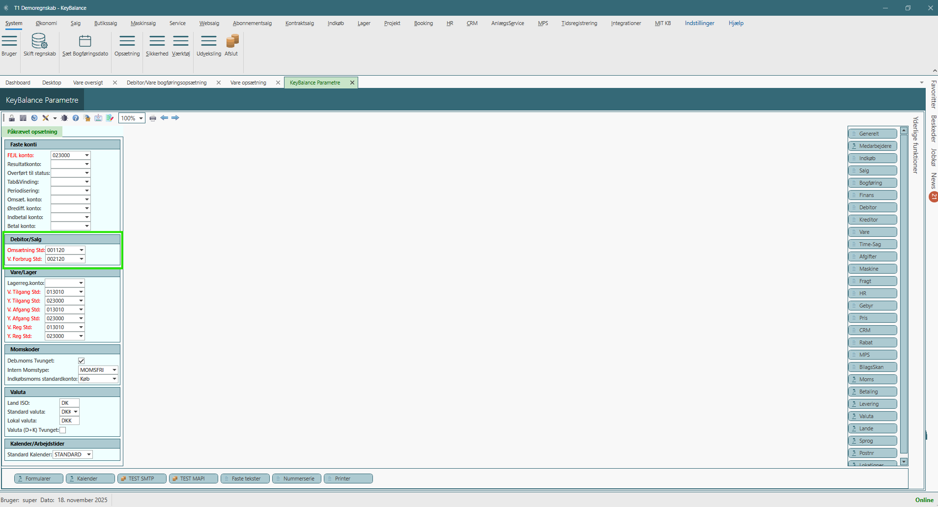 Debitor-/Vare Bogføringsopsætning i KeyBalance
