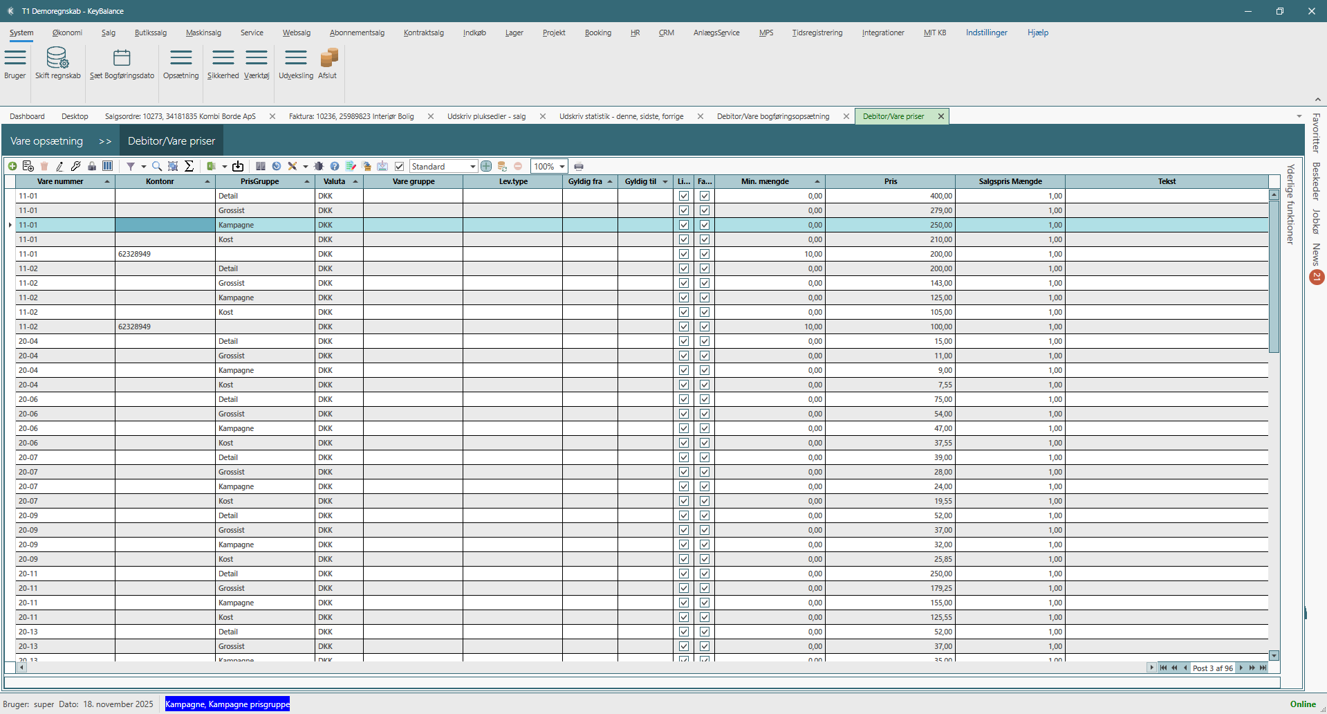 Udfyld felterne Gyldig fra og Gyldig til. KeyBalance vælger automatisk den gældende kampagnepris.