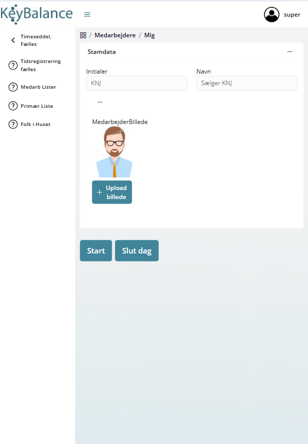 Medarbejderens identitet vælges efter login ved at trykke på billedet.