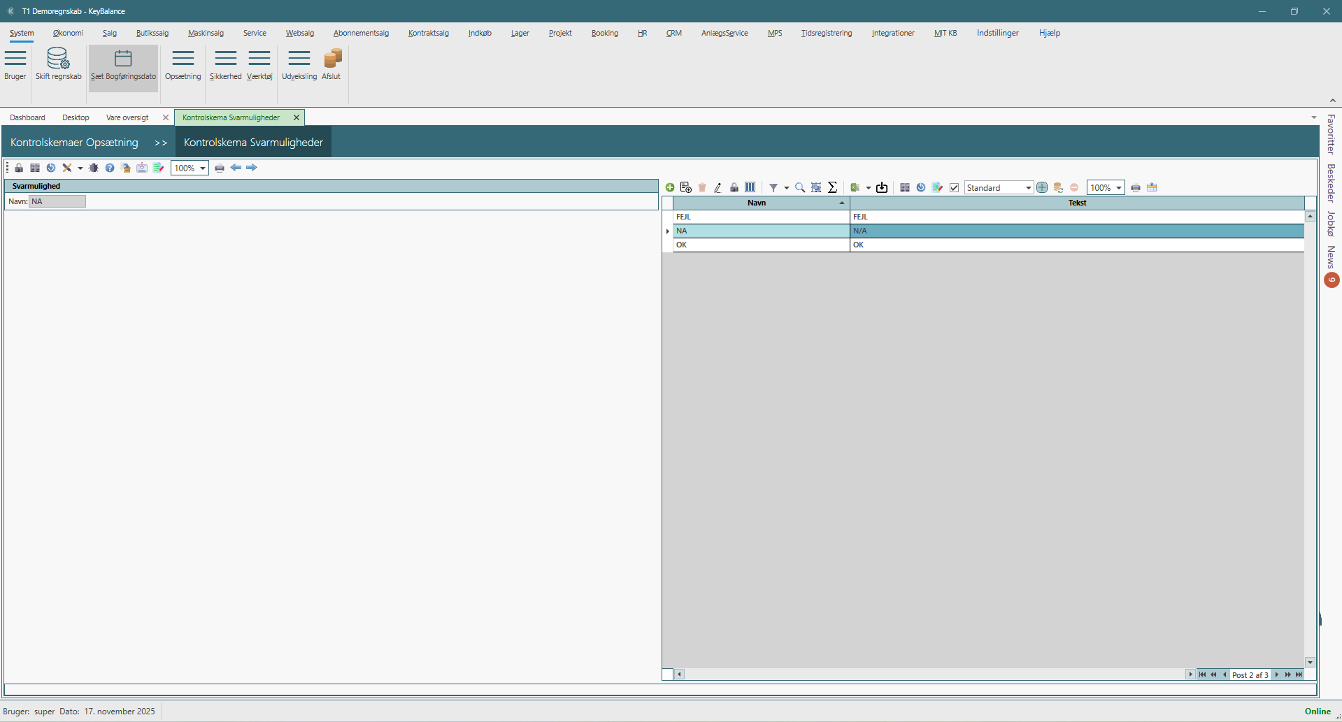 Opsætning af kvalitetssikring & kontrolskemaer i KeyBalance