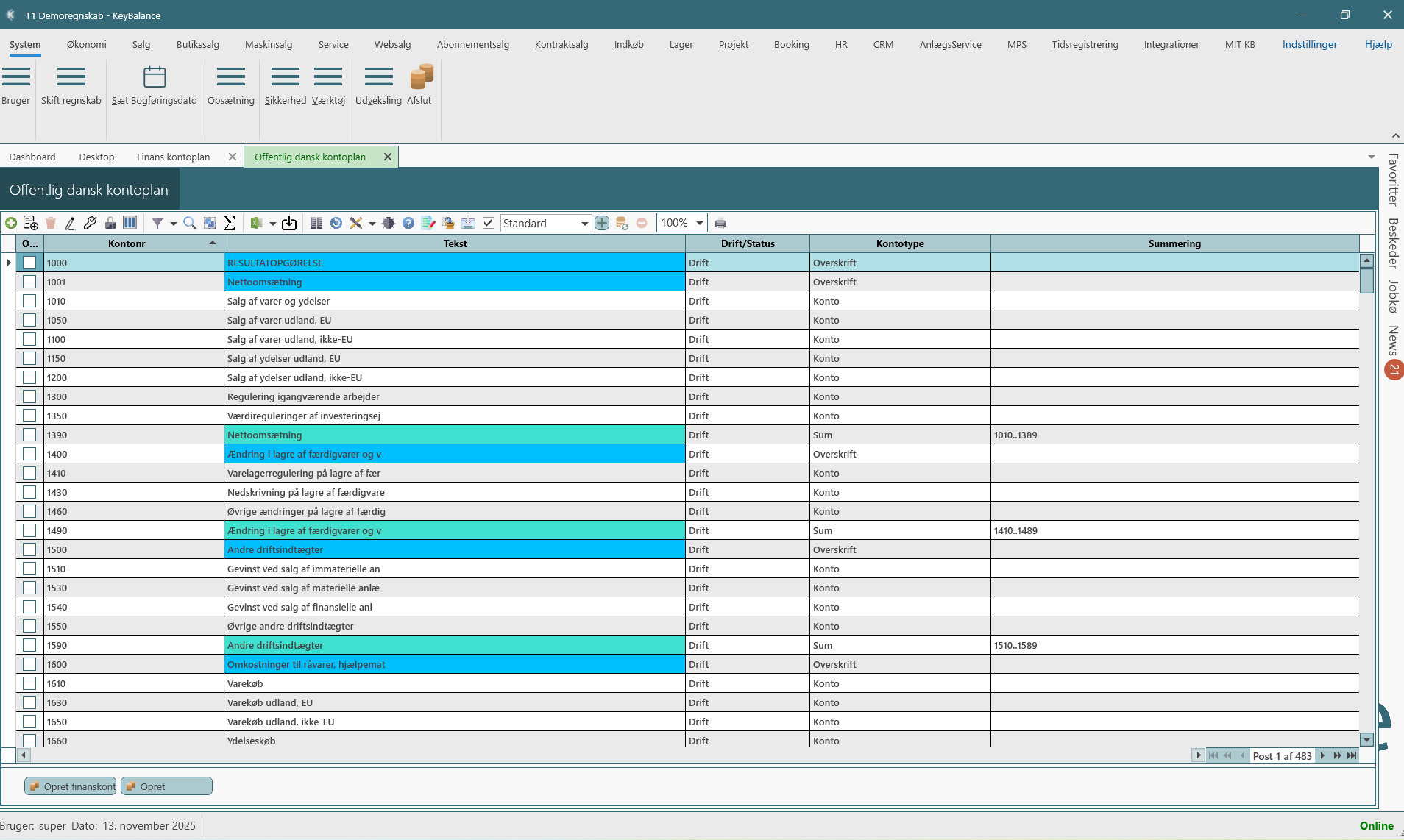 - Drift/Status, Kontotype, Summering