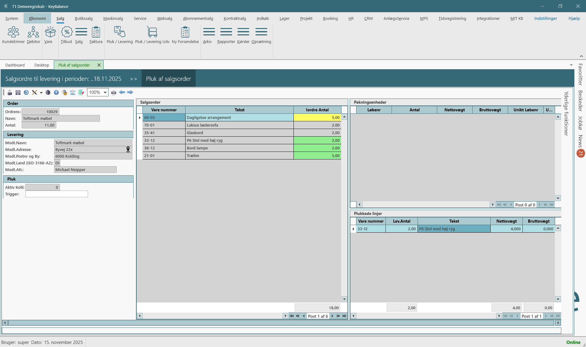 Pluk og pak i KeyBalance er en integreret del af lagermodulet – ikke et separat system.