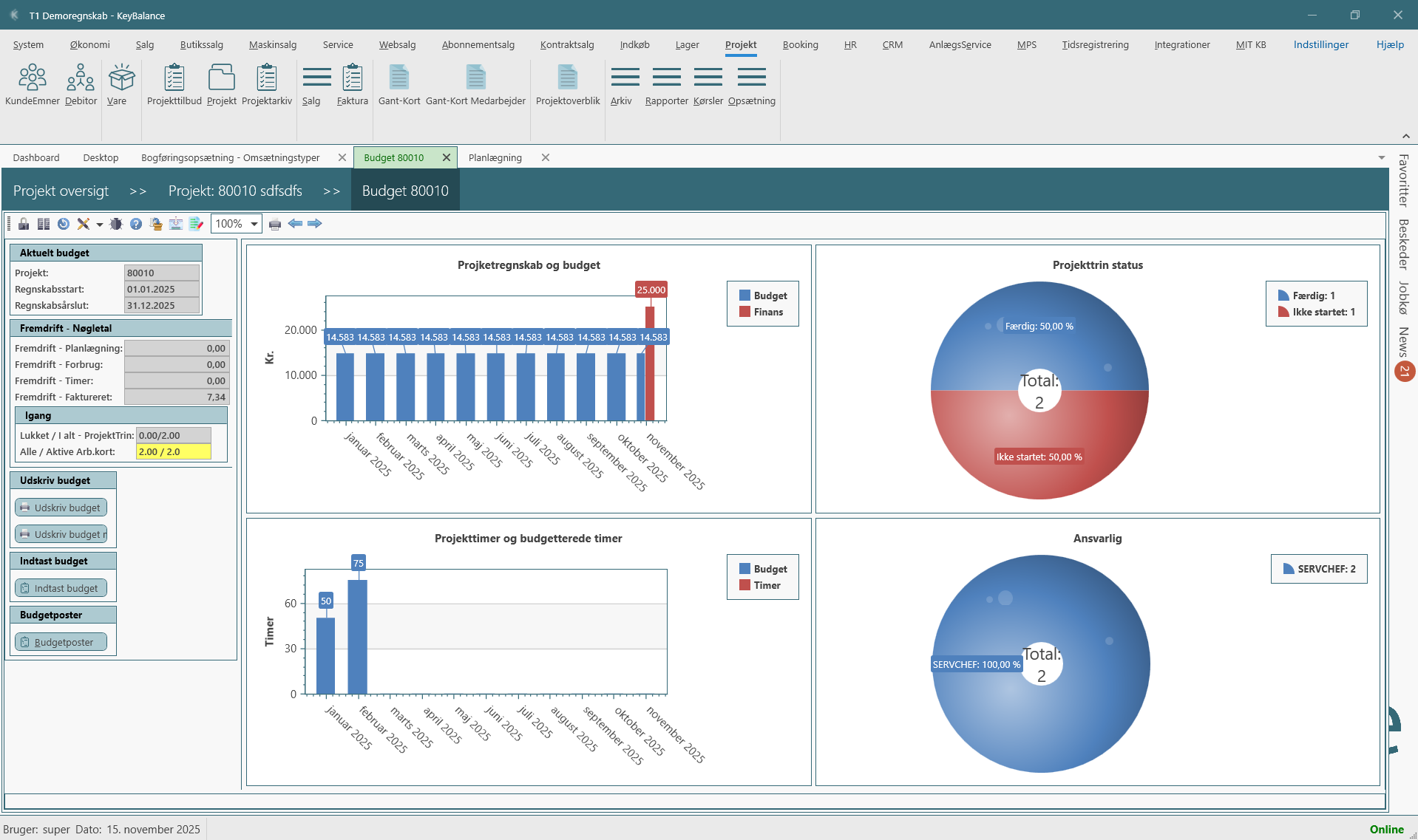 Begge tal opdateres øjeblikkeligt, når der bogføres tid, varer, kreditorfakturaer eller faktureres til kunden. DB kræver ikke budget og kan bruges fra første dag.