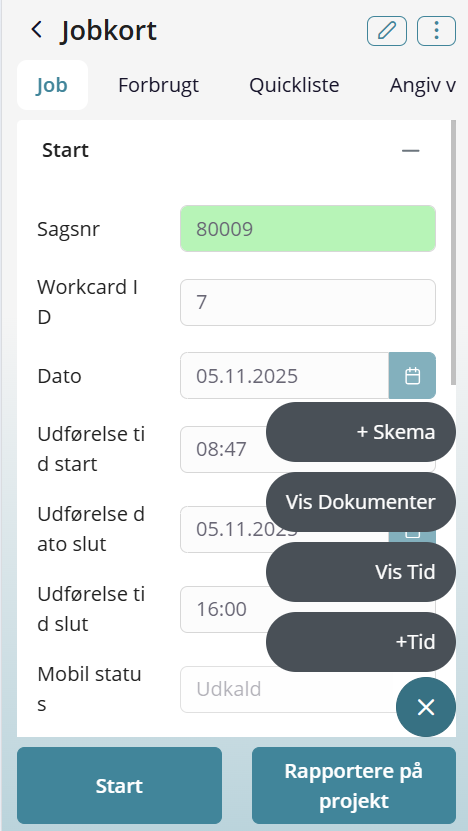 - Starter arbejdet på en opgave (fx et arbejdskort eller en sag)