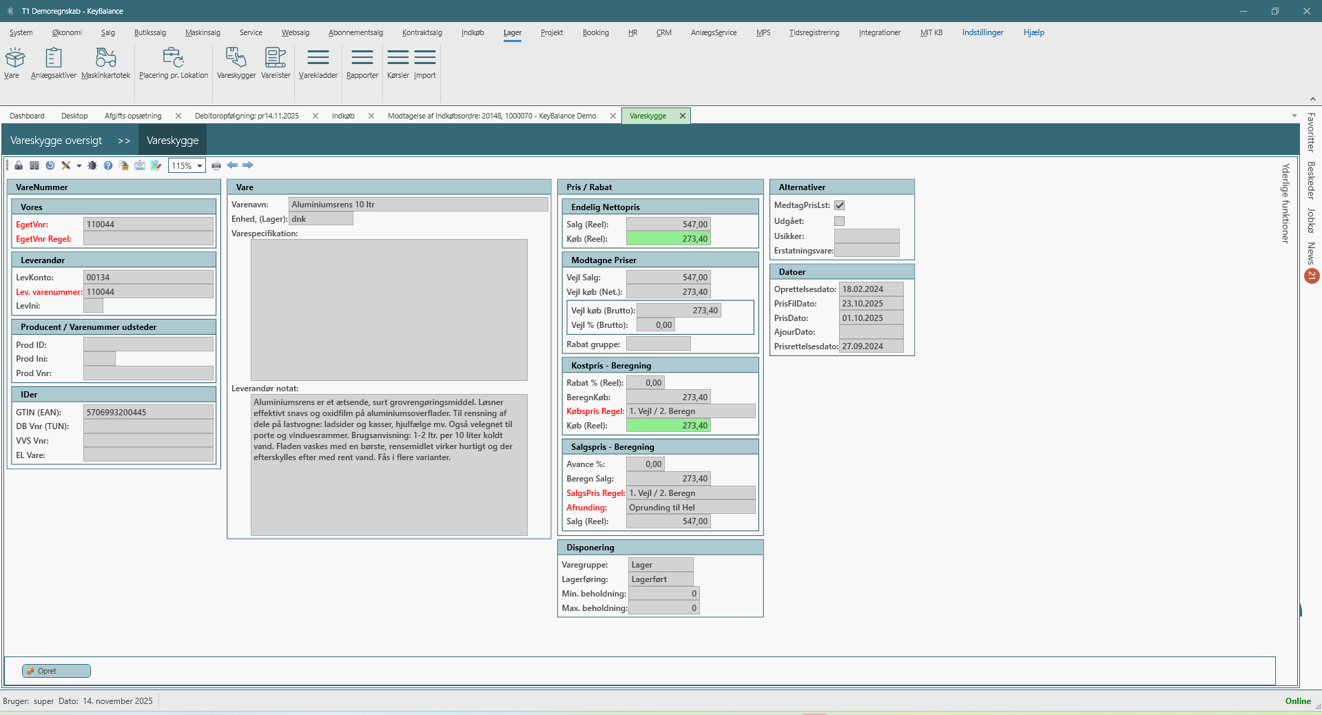 - Varen oprettes i det normale varekartotek og kan derefter bruges som alle andre varer.